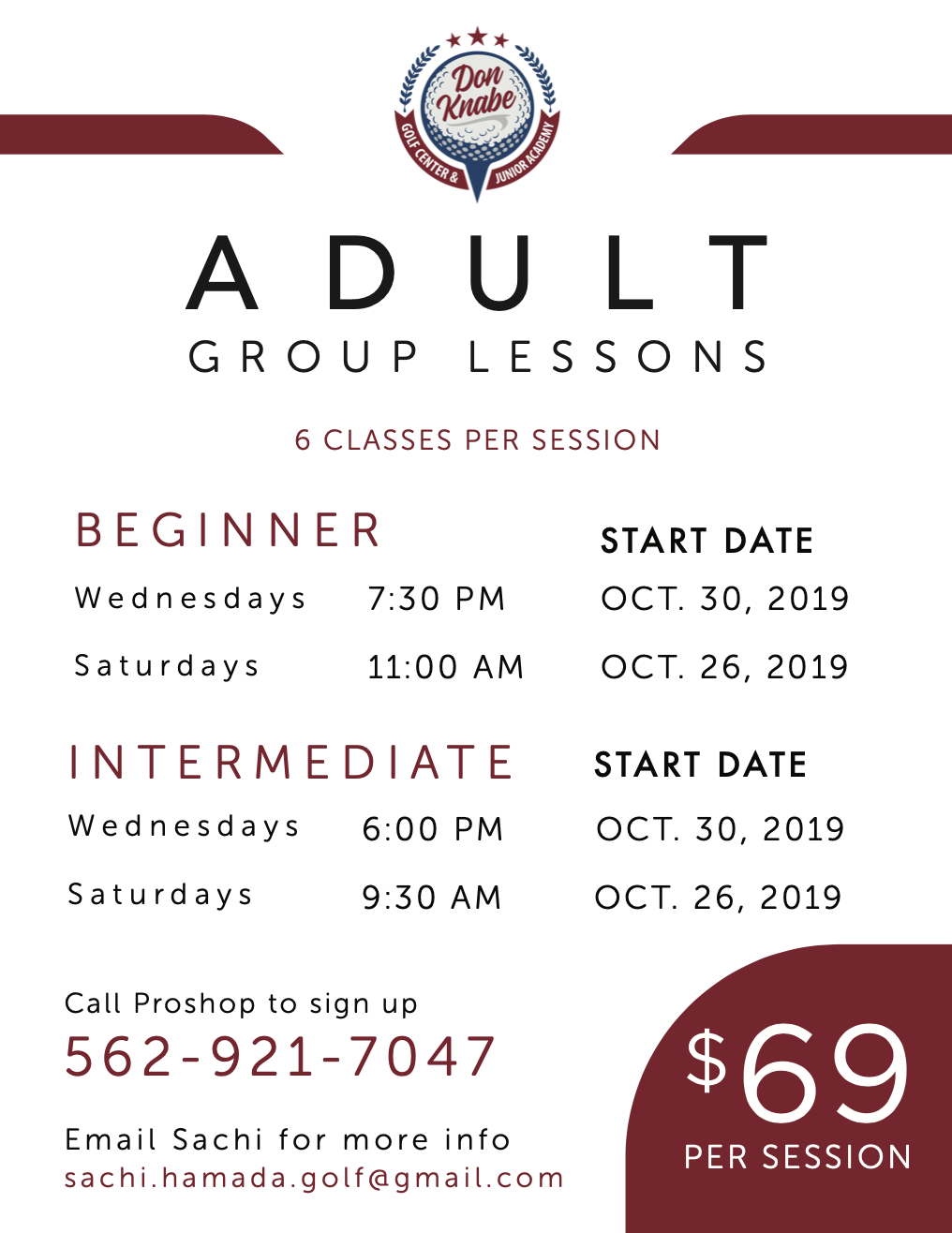 Adult Intermediate Group Session Saturday, October 26, 2019 9:30 AM 10:30 AM 09:30 10:30 Google Calendar ICS